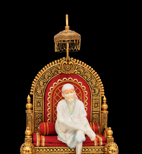 The thrown and umbrella and other artwork in the showpiece is handmade and hand-painted. A high-quality Duco paint is used to protect the color used on the Shirdi sai baba statue of Shirdi sai baba idol.