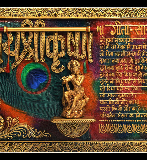 Wooden Golden Mural Krishna with Mseal Work on it