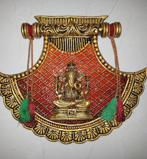• Beautiful wall hanging of Lord Ganesh / LAXMI / SARASWATI on the leaf will definitely bring in a divine serenity to your home decor. It is crafted from metal which ensures an ethnic look as well as durability. This art piece surely grabs attention in your living room. It serves as a great gift, especially around religious celebrations and festivities. Each wall hanging is diligently handcrafted by skilled artisans from the house using various traditional techniques.